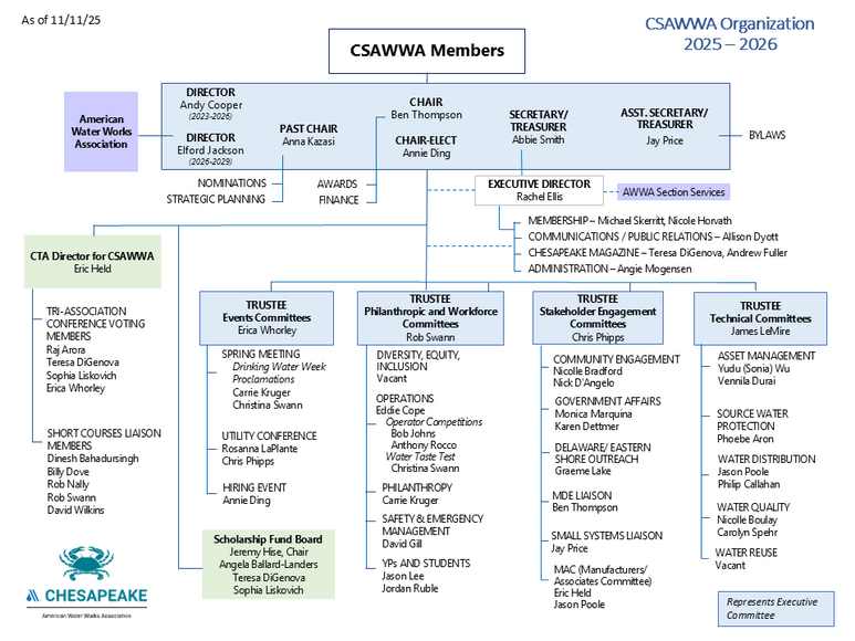 The links below provide information on our section leaders, over the course of our 75+ year history -- volunteers who have gone above and beyond for Chesapeake AWWA, and for the waters that we work to keep safe and clean every day.
